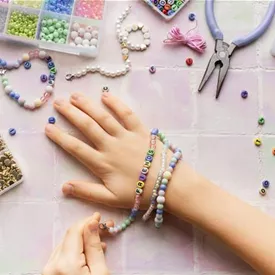 In unserem Perlenschmuck-Kurs gestalten Jungs und Mädchen ihre eigenen Armbänder ganz nach ihren Vorstellungen.