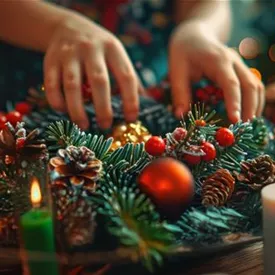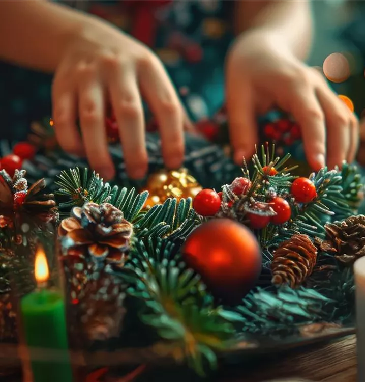Kerzengesteck gestalten für Kinder. Jedes Kind steckt sein eigenes Gesteck mit frischem Grün und darf es anschliessend ganz nach den eigenen Wünschen ausgarnieren. So entstehen individuelle, festliche Kerzengestecke – mit ganz viel Spass und Fantasie
