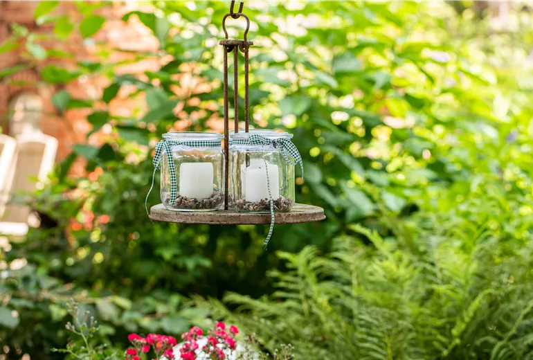 Windlichter und Laternen als Gartendekoration für gemütliche Abende