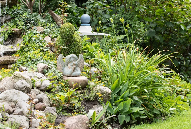 Zahlreiche Steinfiguren können als Pflanzkübel verwendet werden. Ausdrucksstarke Gesichter, Elfen, Engel oder Tiere sind die Klassiker unter diesen Statuen. Doch auch kleine Trolle oder Baumwächter aus Stein sind eine Bereicherung für den Garten – sofern diese Deko-Elemente zum persönlichen Stil Deiner grünen Oase passen. Für den Zen- oder Steingarten kommen auch imposante Tempel-Löwen, Drachen, Samurai-Krieger oder Buddhafiguren in Frage. Ein steinerner, verspielter Gartenbrunnen bringt etwas Nostalgie und Märchenhaftes in den Garten und lässt sich wunderbar in einer ansonsten unwirtschaftlichen Ecke platzieren. Grosse und kleine Betonkugeln sowie unterschiedlich grosse Pflanzkübel aus Beton geben sich dagegen betont kühl und passen eher zu einem akkurat gestalteten Garten. Eine steinerne Gartenbank ist ebenfalls ideal, um dem Garten ein ganz besonderes Flair zu verleihen und bietet – beispielsweise im Schatten eines Baumes – eine Gelegenheit zum Sitzen und Träumen. Mit einem optisch dazu passendem Sitzkissen wird das Sitzen auf der ansonsten kühlen und harten Steinbank dennoch richtig gemütlich.