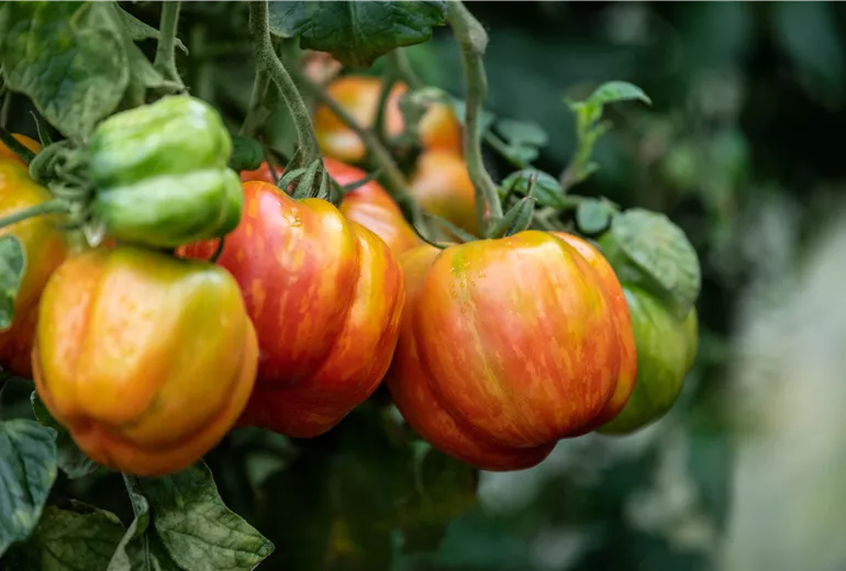 Für Dein Balkon- oder Topfgemüse eignen sich am besten pflanzliche Flüssigdünger. Diese kannst Du regelmässig ins Giesswasser geben und so Deine im Kübel wachsenden Tomaten-, Paprika- und Gurkenpflanzen mit ausreichend Nährstoffen versorgen. Flüssigdünger stehen den Pflanzen schneller zur Verfügung als beispielsweise Kompost oder Hornspäne, die von den Bodenbakterien erst nach und nach zersetzt werden müssen, um dann von den Pflanzen aufgenommen werden zu können. Daher solltest Du Flüssigdünger nur mit Mass verwenden und lieber weniger und dafür öfter und regelmässig düngen. Da den Gemüsepflanzen im Kübel mit dem begrenzten Erdvolumen nur ein limitiertes Nährstoffangebot zur Verfügung steht, ist auch hier das Düngen im Sommer unerlässlich. Für Kübelgemüse gibt es spezielle Dünger wie beispielsweise Tomatendünger, den Du auch gut für Paprika und andere Starkzehrer verwenden kannst. Tomatendünger fördert neben dem Wachstum der Pflanzen auch die Blüten- und Fruchtbildung und sorgt so bei Tomaten, Paprika, Gurken, Auberginen und anderem Fruchtgemüse für eine üppige Ernte.