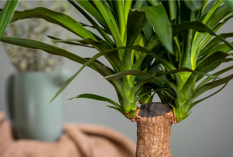 Damit Deine Zimmerpflanzen im Winter nicht austrocknen, musst Du nicht gleich Dein ganzes Zuhause in eine feucht-warme Sauna verwandeln. Du solltest die Pflanzen aber – wenn auch zurückhaltend – im Winter ab und zu giessen und die Luftfeuchtigkeit in der Nähe der Pflanzen erhöhen. Hierfür kannst Du einen attraktiven Zimmerbrunnen, einen Luftbefeuchter oder einfach eine Schale mit Wasser neben die Pflanzen stellen. Zusätzlich solltest Du die Blätter Deiner Pflanzen im Winter regelmässig mit Wasser besprühen oder mit einem feuchten Lappen abwischen. Braune, vertrocknete Blattspitzen sind bereits ein deutliches Zeichen für eine zu geringe Luftfeuchtigkeit. Sie lassen sich jedoch mit diesen einfachen Mitteln gut vermeiden.